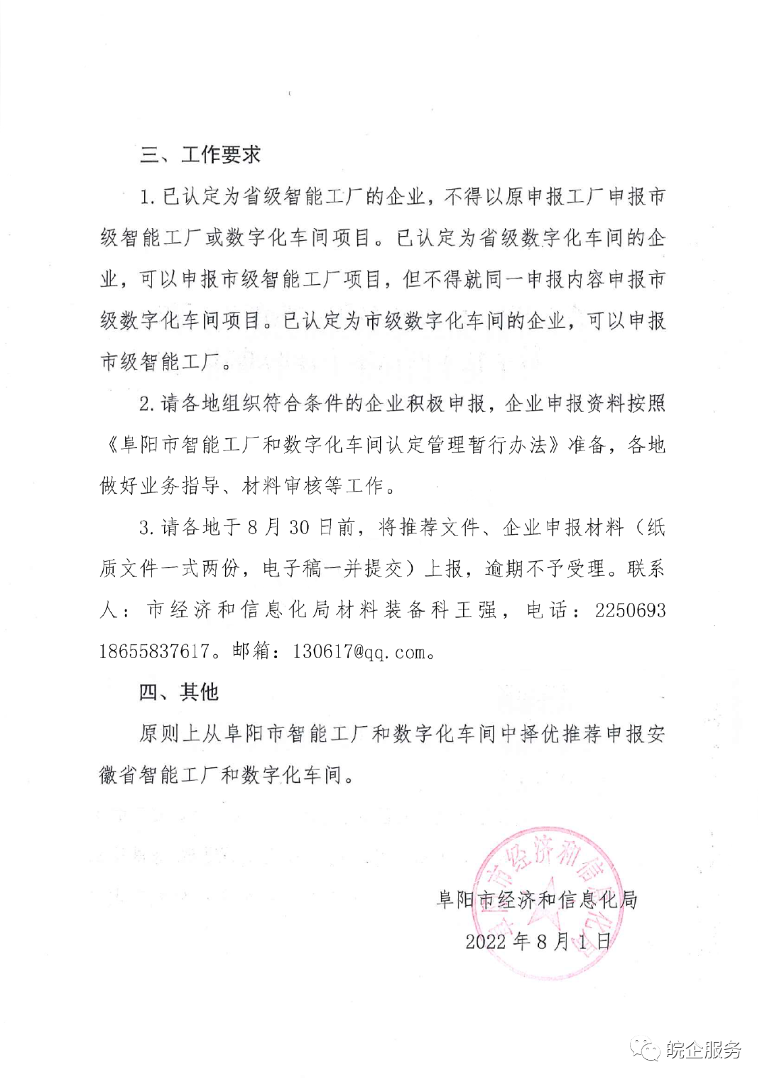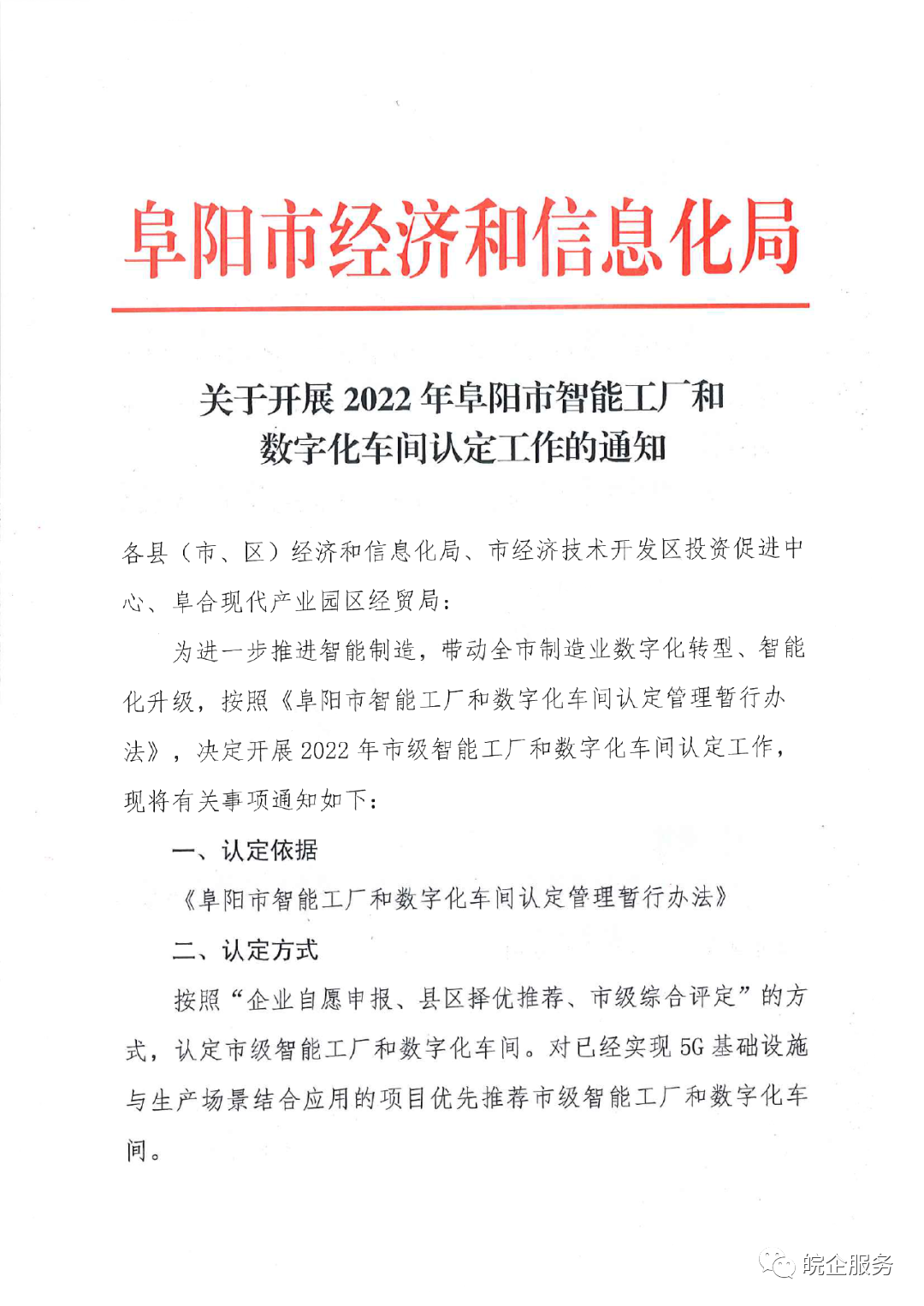邦企云服丨阜阳市2022年智能工厂和数字化车间认定工作的通知