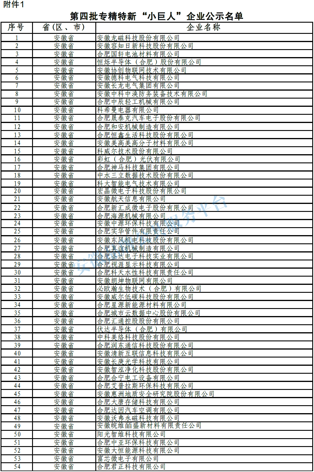 1、附件1:第四批专精特新“小巨人”企业公示名单
