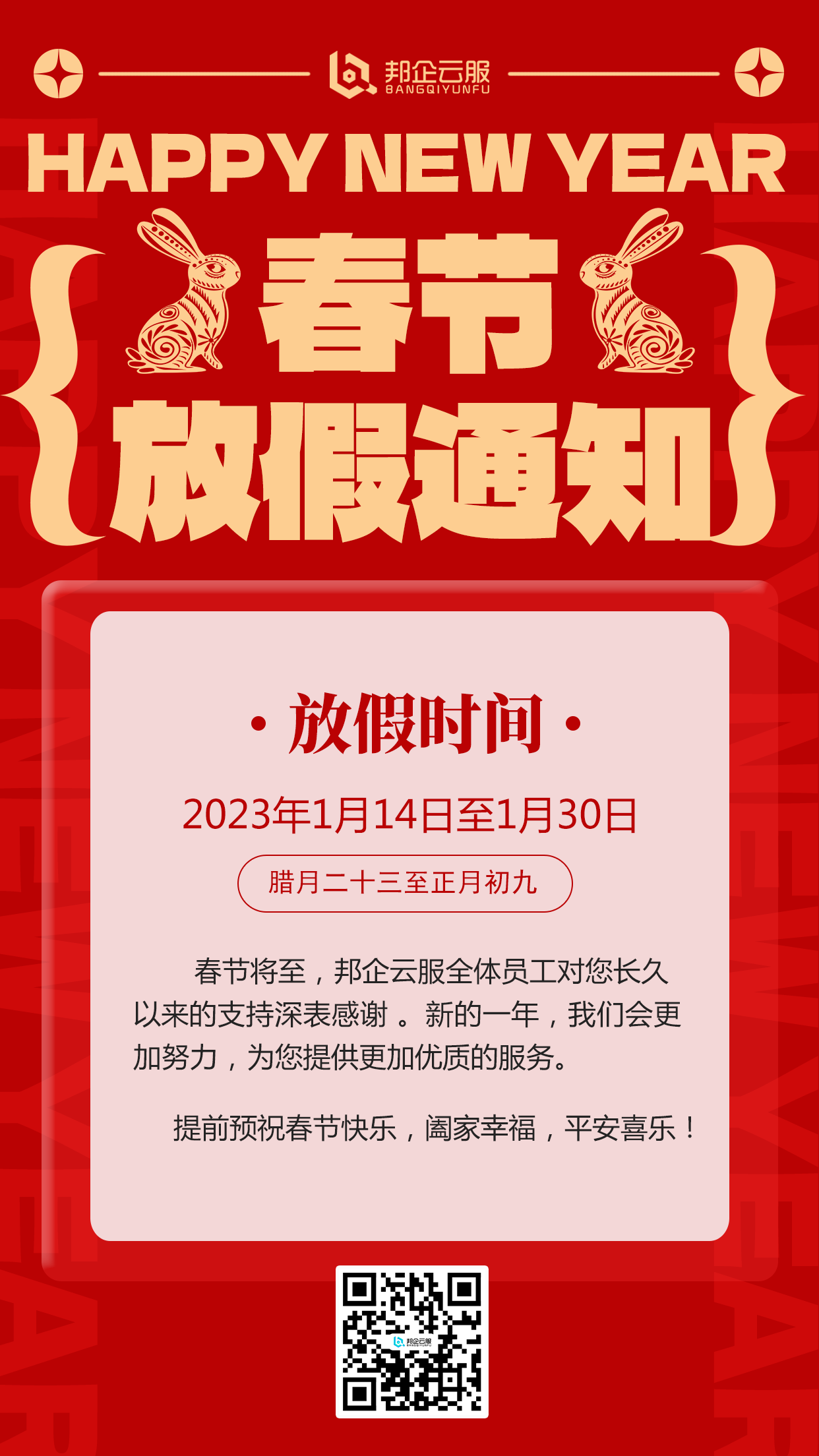 邦企云服丨关于邦企云服2023年春节放假的通知