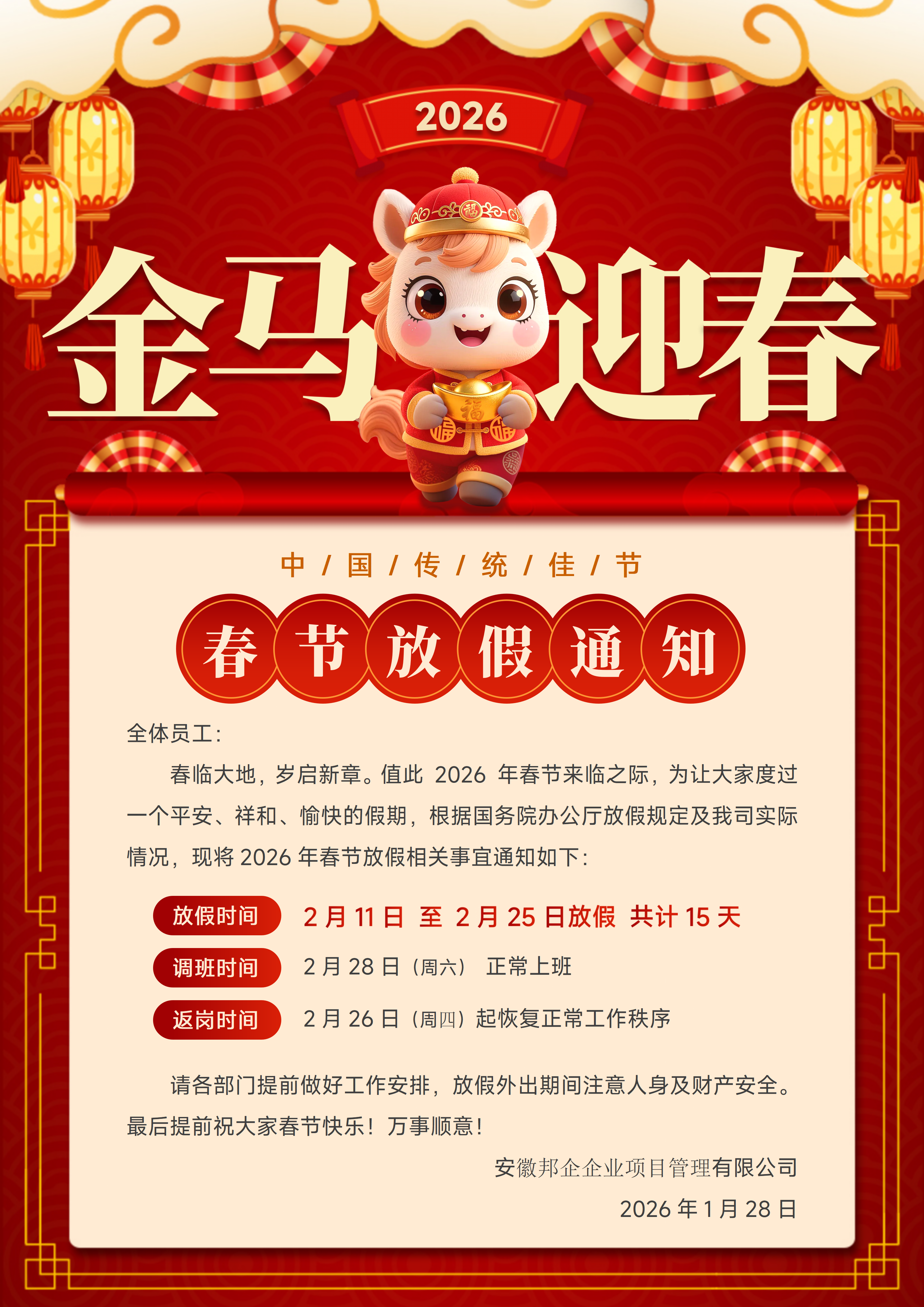邦企云服-2026年春节放假通知
